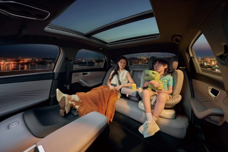 并且还有同级唯一全景沙发躺椅支持副驾一键折叠,可实现后排专属超长腿托,视野角度增加38°,加厚腰靠与可调节头枕,实现背、腰、腿三维支撑,无论宝妈照顾孩童、旅途中照顾长辈,还是工作间隙小憩,可以享受从容自在的舒心时光。